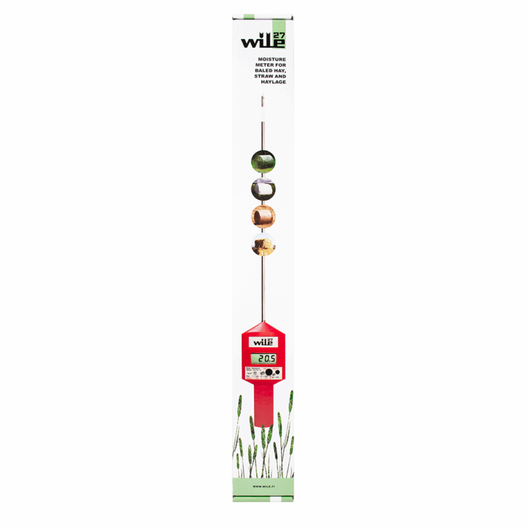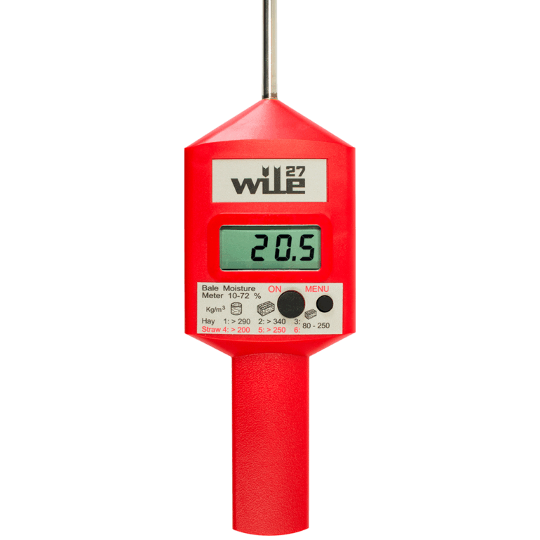 Das Wile 27 Feuchtigkeitsmessgerät misst den Feuchtigkeitsgehalt von Heu-, Stroh- und Heulageballen. Es ist ein einfaches und benutzerfreundliches Gerät.